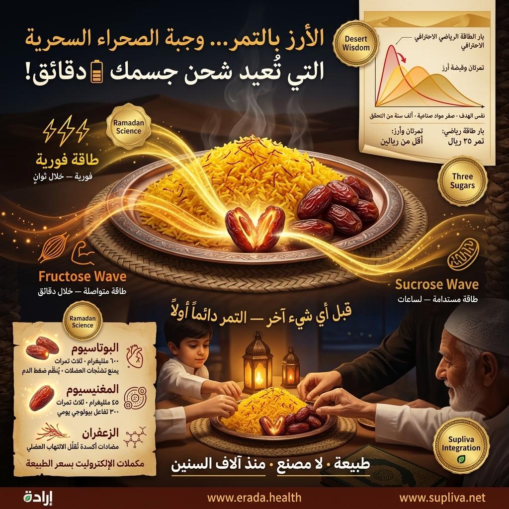 وهو بالضبط ما تحاول بارات الطاقة الصناعية تحقيقه… لكن بشكل طبيعي تماماً في التمر!